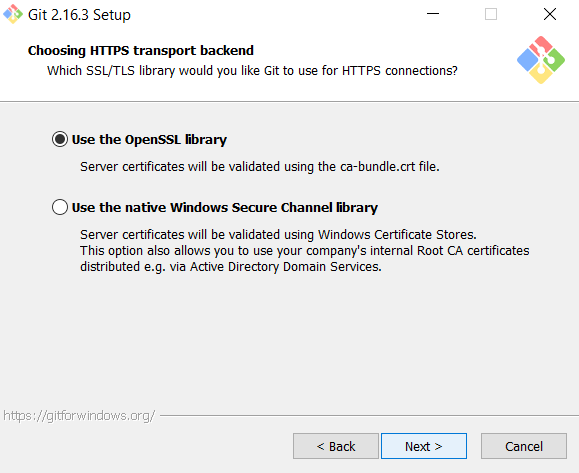 Leave HTTPS transport backend set to “Use the OpenSSL library.”