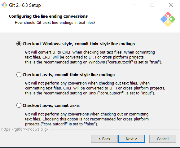 Leave the line endings to “Checkout Windows-style, commit Unix-style.”